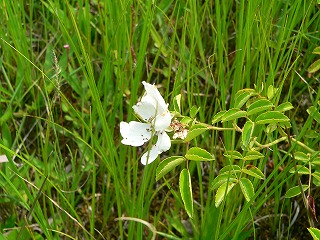 【左】湿り気の多いところで見られるミヤコイバラ 【右】モウセンゴケと花