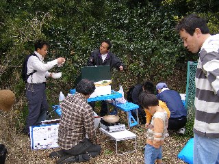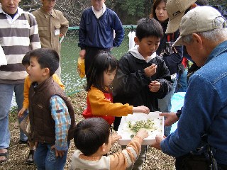 【左】皆さん、野草試食の後、満足そうな顔です。