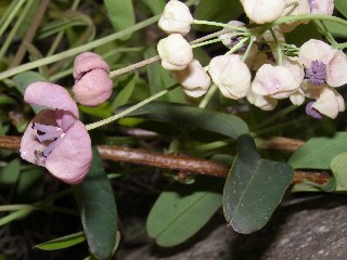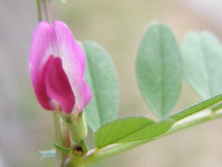【右】カラスノエンドウの花、周りのピンクの花びらを旗弁(きべん)といいます。