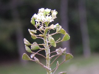 【左】春の七草の一つになっているナズナの花と果実です。実の形からペンペングサともいわれます。