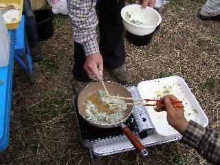 【左】野草のテンプラの準備をしています。
