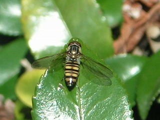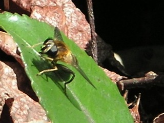 【中】アシブトハナアブ(オスの後ろ足が太いのが名前の由来です)