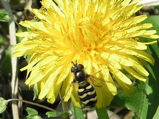 【左】ナミホシヒラタアブ(冬にはあまり見なかったのに今日はよく見ました)