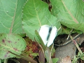 【左】モンシロチョウ(大池公園の土手に飛んでいました。やっとあちこちで見るようになりました)