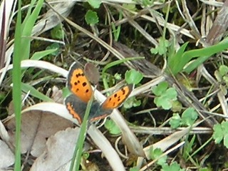 【中】ベニシジミ(大池公園の土手にいました。羽の朱色が鮮やかです)
