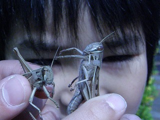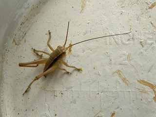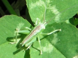 【左】ヤブキリ幼虫?(キリギリスの幼虫は背中の両側に黒い筋があるようですのでヤブキリと思われます