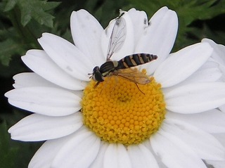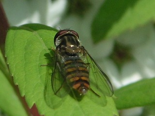 【右】ホソヒラタアブ(草よりも木の葉や花上によく見られました)
