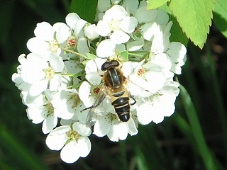 【左】アシブトハナアブ(3月になってよく見るようになりました)