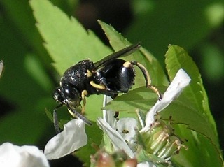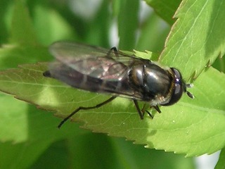 【中】クロヒラタアブ(ホソヒラタアブ同様成虫越冬し、幼虫はアブラムシの天敵です)