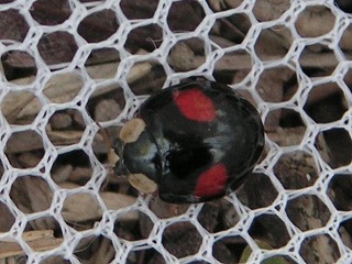【左】ナミテントウ(羽につやがあるテントウムシは肉食性のものが多いようです)