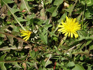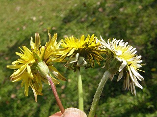 【左】右からトウカイタンポポ、セイヨウタンポポ、キビシロタンポポ