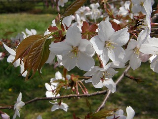 ヤマザクラ、オオシマザクラ、ソメイヨシノ、ハナモモ、ヤブツバキ、ヤマモモ、ウラシマソウ、カラスノエンドウ、スズメノエンドウ、ホトケノザ、シロツメクサ、セイヨウタンポポ、キビシロタンポポ、オランダミミナグサ、コハコベ、オオイヌノフグリ、タチイヌノフグリ、トキワハゼ、ノボロギク、ヒメスミレ?、ナズナ、キウリグサ