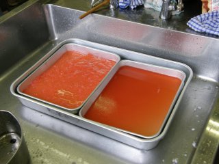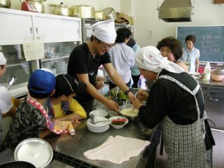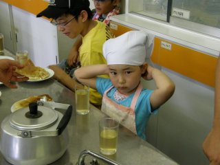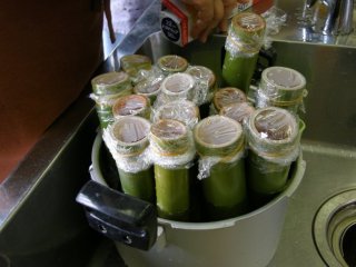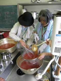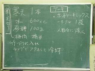 大池公園梅林公園で梅の実を採取しました。管理協会で準備して頂いた竹竿を使い梅の実を丁寧に取り入れました。今年は梅の実は少なめ、ということでしたが、実際取り始めると粒は大きめ、去年よりたくさんとれたのではという声もありました。まだ取りたいのに・・・という気持ちを抑えて10時半ごろには農業センターへ。農業センター内の調理実習室で調理スタート。実習室に入り各班ごとにテーブルに着くと まずはホッとしてホットケーキミックスをボールの中に入れとき始めます。本日の調理実習は 梅肉と寒天を使った寒天ゼリー、そして梅ジャムを乗せて食べる梅ホットケーキです。ホットケーキが焼ける間に管理協会の担当の方が大鍋で寒天を溶かします。ほぼとけたら梅色の付いた梅肉をいれ竹筒に入れて完成です。赤色のステキな寒天ができあがりました。待っている間に梅ジュースとジュースの中の甘酸っぱい梅をほおばります。今日とった梅でできた実習ではありませんが、梅ジュースや梅酒の漬け方をメモし、帰ったらさっそく「実習」の予定で解散です。竹筒に入れた物寒天はお土産にしました。(京都の老舗で売っている水ようかんと同じ食べ方で、竹筒の底に穴を開けて刷って食べます。他所ではお目にかかれない貴重な実習です!!)(記・竹内秀)