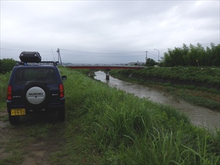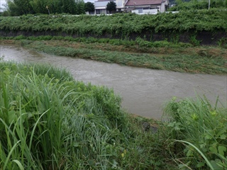 【左・中】8:20頃の川の水量。めったにない深さの増水および流れの速さ。これを見て、即、中止を決定