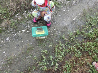 【左】川の増水を見て帰るつもりが、この水たまりでたくさん遊んだ。右手の土手が阿久比川の堤防。左手は田んぼ
