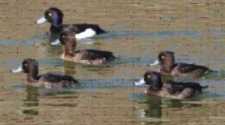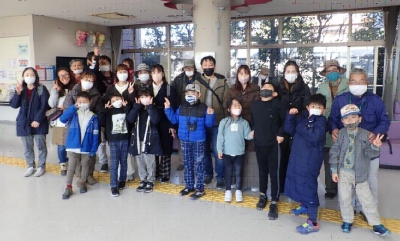 寒波が来ているのに、風がなく暖かなせいか、鳥が何種類も空を飛んでいる。馬池ではカモがのんびりと昼寝をしていたが、皆の声で目を覚まし、少しずつ離れだした。降幡さんが「夜餌を探すので、昼は居眠りをしているんだよ」と話すと子供達は驚いていた。池の工事でヨシが減って、隙間からカモの姿が見えるようになり、ありがたかった。田んぼではドバトやキジバトがいて、上空にはカワウやヒヨドリが飛んでいた。カワウが様々な隊列をなして飛ぶ姿に子供達は感心していた。先頭がなぜ入れ替わるかよく知っている。古川さんが鳥声を聞くだけで鳥の名前が分かるので、参加者全員がビックリしていた。その後背の池に集まっているカモを古川さんのセットした望遠鏡で覗いたりして、大人も小さな子まで楽しく観察することができた。(記:吉房)