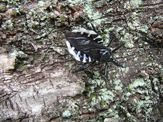 任坊山の森の中は天候のせいか虫たちが少ない感じがしました。それでも目を凝らして探すとオオワラジカイガラムシ、ベニヘリテントウ(オオワラジカイガラムシの天敵)らしき虫の幼虫、トビズムカデ、ヨコヅナサシガメ、アオスジアゲハのさなぎなどに出会えました。