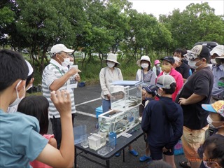 【左・中】つかまえた魚類以外の説明 【右】主催者からのお話。アンケートや次回開催のお願い