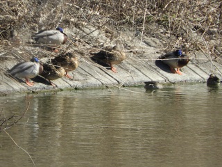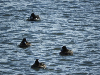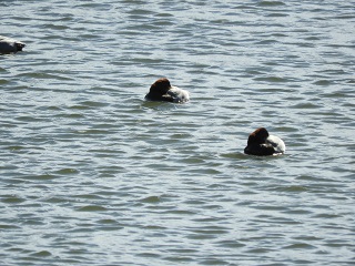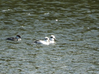 【左】キンクロハジロ 【中】休息中のマガモ 【右】ミコアイサ雌雄