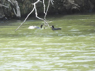 【左】アップのアオサギ 【中】オオバン 【右】ハシビロガモ給餌