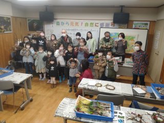 大府市二ツ池公園の中を家族で和気あいあいと工作材料を求め散策した後、セレトナの会議室に戻り楽しい工作をしました。  (記:降幡)
