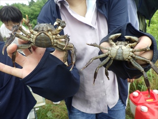 指導員のうちの川の達人たちも色々ゲット、イシガメ、モクズガニ、ヤリタナゴ等々、個々の説明に一段と力が入りました。