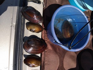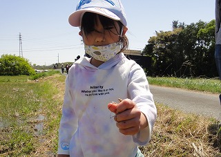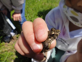 【左】ヌマガエル 【中】 【右】こども未来館裏の小川で採集したドブガイ属ヌマガイ