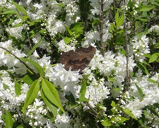 【左】オオカマキリ(卵鞘) 【中】ウノハナに留まったルリタテハ(裏面) 【右】ミノガ(蓑虫)