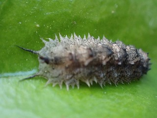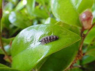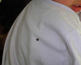 【左】肩に留まったマルカメムシ 【中】イスノキに居た未同定種 幼虫 【右】同左 拡大