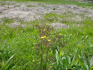 【左】ヒメブタナ 【中】ナカ゜ミノヒナゲシ 【右】ワラビ
