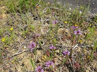 【左】ノダフジ(花筏) 【中】マンテマ 【右】ニワゼキショウ