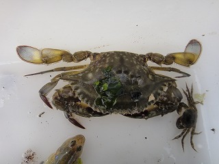 【左】フトオビイソテッポウエビ   【中】ガザミ(ワタリガニ)   【右】イソガニ