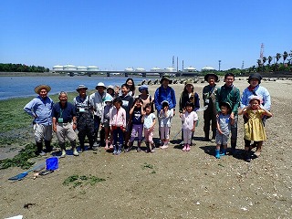 干潮は午前11時過ぎですが、開始時にはすでに潮が引き始めておりアナアオサがかなり打ち上げられていて、そこはヘドロ状で長靴でも15cmほどめり込むような状態で生きもの探しにはやや困難な状況でした。