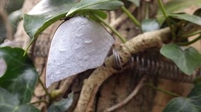 【左】セミの抜け殻 【中】ツヤアオカメムシ 【右】クモの卵のう