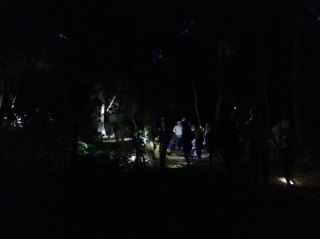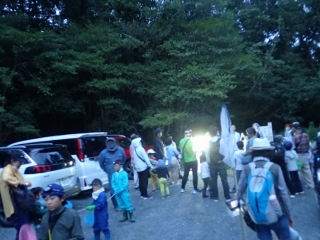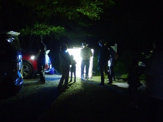 今年は梅雨に入るのが特に早かった。雨もよく降り、九州地方では線状降水帯によ る大雨の被害も報じられる年となった。梅雨明け間近といわれるが、今のところいつ かははっきりしていない。観察会前々日の午後にはゲリラ豪雨のような雨の降り方も あり、落ち葉は湿り、観察会当日はむしっと湿度の高い燈火採集日よりとなった。樹 液の出ている木にはコクワガタが多数見られ、カブトムシは3頭、しかしながら観察 会の参加者が多く、子供たち全員には渡りきらないという現状となった。今日は駐車 場の無断利用がほとんどなかったのに、参加者が多く、近くの公園近くに停めてもら うということも発生した。
