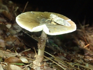 スタートしてすぐ、ニイニイゼミの羽化が見られた。低いところで羽化するので見 やすい。キノコの柄にとまって羽化をしキノコの傘の上を動き回るセミはだあれ?子 供たちはほら見て!と目を光らせて見入ったが、親の方が「カブト、クワガタ」と唱 え、「先生の近くの前の方にいないととられちゃうよ」と何回も聞いたのが、近頃の 傾向になってきたか?子供の中には、「やだ〜さわれんもん!」という子もいたよう だった。クワガタが虫好きの入り口になってくれればと願うばかりである。