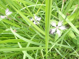 参加者は小さい子供さんが多く、トンボにバッタにタモを振り回して「獲物」を捕 まえようとする姿がまぶしく頼もしく感じられた。オオシオカラトンボや、シオカラ トンボが多く飛んでいた。