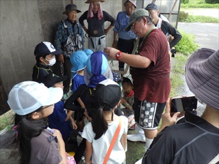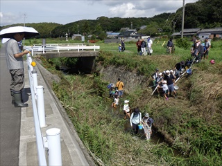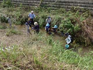 【観察された生き物】 ◎ 魚 類 アユ、ウナギ(成魚、幼魚)、ギンブナ、スミウキゴリ、マハゼ、ゴクラクハゼ、ヨシノボリ、メダカ、カダヤシ、ブルーギル ◎ 甲殻類 エビ類:スジエビ、テナガエビ、ヌマエビ/カニ類:モクズガニ、アメリカザリガニ ◎ 昆虫類 ハグロトンボ、コオイムシ ◎ 両生類・は虫類 両生類:ヌマガエル、トノサマガエル