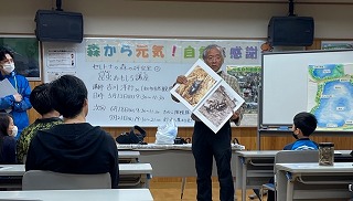 「雨宿りをしている虫を探そう亅と写真を見ながら解説を聞いてからスタート。