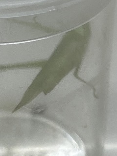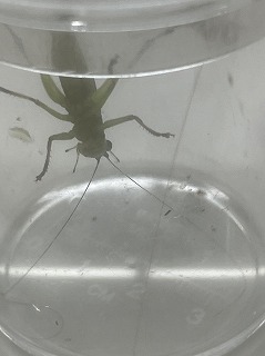 遊具もある公園部分でカネタタキ探しをしましたが、ツクツクボウシが元気に鳴いてたり、目についたカマキリに気を取られたりする子が多くてせっかく鳴いていたカネタタキはほとんど気が付かずに芝生の虫探し。オンブバッタやシバスズなどを見つけることができました。