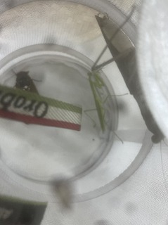 アオマツムシ(交尾中の個体)、ハラビロカマキリ、チョウセンカマキリ、オオカマキリ、