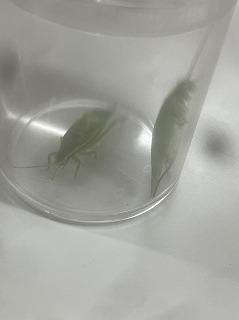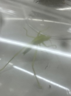 その後森の中に入り、虫探し。東屋のところでは弱ってたアブラゼミを見つけたり、シロオニタケなどのキノコやマンネンタケなどを愛でながら歩いて草が少なくてもコオロギ類がいることに気がついていました。鳴かない虫のハサミムシなどもとっていました。草原(クサハラ)についていよいよ虫を追いかけて夢中になり、カマキリやたくさんのコバネイナゴ、ササキリなどを捕まえることができました。今回は草が長めのために、エンマコオロギなどのコオロギ類が捕まえにくかったのが残念でしたけど、子どもたちはしっかり楽しむことができたようで