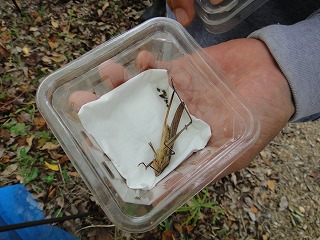 【左】狩り蜂のお話 【中】半死クビキリギス 【右】カマキリ 採集