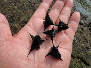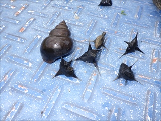 【左】モンクロシャチホコ 【中】ウスバキトンボ 【右】オオタニシ、ヒシ