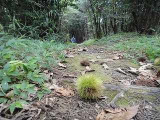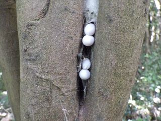 【左】カラスザンショウ咲く雑木林 【中】セミの抜殻散見 【右】三等三角点