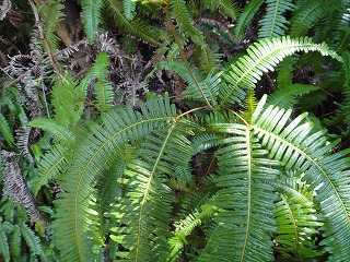 【左】コオニビシ 葉 【中】コオニビシ 実 【右】コシダ群落
