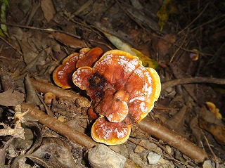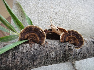 【左】シロテングタケ 幼菌 【中】マンネンタケ 【右】チャカイガラタケ