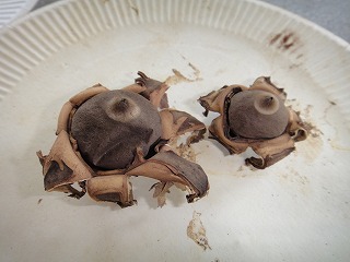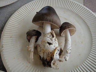 【左】エリマキツチグリ 【中】ツルタケ 【右】ヤマドリタケモドキ