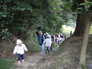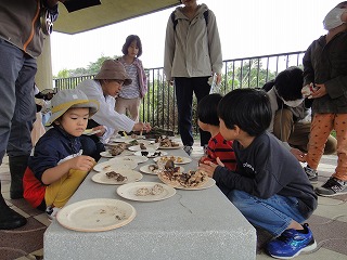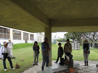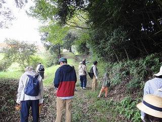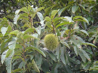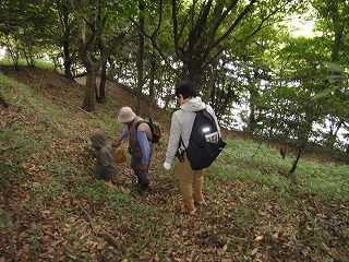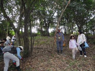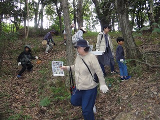 【左】集合場所「あずま屋」 【中】雑木林「クリ結実」 【右】「ハギ」開会