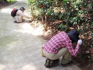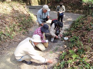 箭比神社へ上がる小道にはフモトスミレが可憐な花をつけていたが、いつもの年よりやや少なく感じた。キク科植物のキッコウハグマを観察する。秋には花をつけるようなので是非見たいものである。